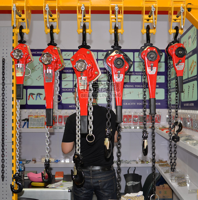 4、由于手扳葫蘆的工作原理是利用夾鉗交替夾緊鋼絲繩的,所以要求使用鋼芯的鋼絲繩而不能用麻芯鋼絲繩,因麻芯繩柔軟而富有彈性,在夾鉗夾緊后有易松動的現(xiàn)象,是不安全的。